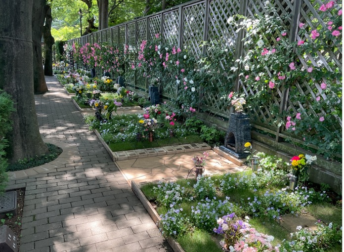小平ふれあいパークは、本格的なガーデニング霊園で、園内のすみずみまで色とりどりのバラと緑で包まれています。